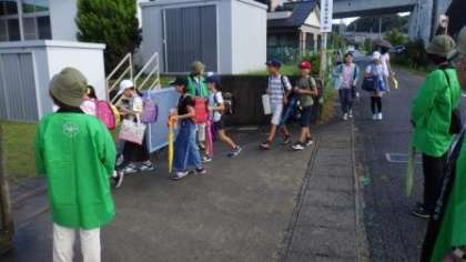 夏休み明け初日の登校風景 〜民生委員児童委員さんによる挨拶運動〜