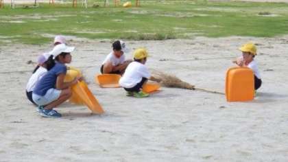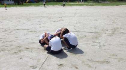 今日の清掃の時間が終わる頃、予告なしでシェイクアウト訓練を行いました。私(校長)は運動場にいたので、運動場の子どもたちの様子しか見ること(撮影すること)ができませんでしたが、外掃除の子や、掃除を終えて運動場で遊ぼうとしている子たちが、運動場の中央あたりでしゃがみこみ、頭を守る姿勢をとることができていました。9月1日が「防災の日」であったため、この時期に避難訓練を行うことが多いわけですが、今後もより実効性のある訓練を計画していきます。