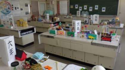 夏休みの作品展示がほぼ完成しました。10日(月)の学校公開日の際にゆっくりご覧ください。今年は体育館でバザーを行うので、体育館は展示会場として使わず、各学級の廊下やワークスペースなどで展示します。4年生以上の工作や、各学年の科学研究作品は1階の家庭科室に展示しています。教室の他に家庭科室にも足をお運びください。繊細で壊れやすい作品も数多くあります。小さなお子さんが、作品に手を触れないようにお気をつけください。