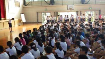 3連休明けの朝は、全校児童が体育館に集まり全校集会で幕を開けました。元気の良いあいさつで始まり、私(校長)からの話の後は、6年生児童が全校の前に立ち、いろいろな話をしました。「木曜日から修学旅行に出かけるため、その留守中をよろしく」というあいさつ、ペットボトルキャップの回収結果の報告、通学団の班長による集合状況の報告などがありました。6年生は9月20日(木)、21日(金)の二日間、奈良・京都への修学旅行に出かけます。