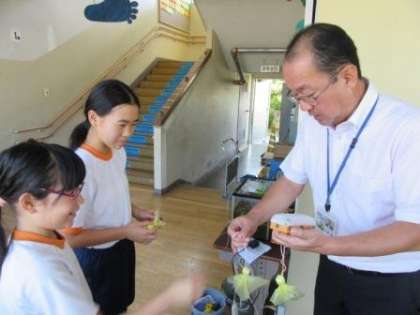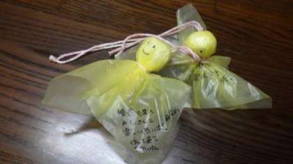 昨日、全校集会の後に5年生の女子児童が2名、校長室に来てくれました。二人は小さな「てるてる坊主」を私に手渡し、「校長先生、修学旅行、気をつけて行って来てください。雨が降らないようにてるてる坊主を作りました」と言ってくれました。二つの黄色いてるてる坊主にはメッセージが書かれていました。5年生は、このてるてる坊主を、修学旅行に出かける全員に作ってくれました。天気予報を見ると、二日間の豊田・奈良・京都の天気は微妙です。でも、てるてる坊主のおかげで、気持ちは晴れ晴れです。この「二人」も奈良・京都に連れていきます。5年生、ありがとう。
