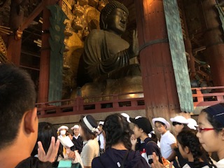 鹿に会うのも楽しみでしたが、今回のお目当ての一つ、大仏です。班ごとに大仏様をバックに写真撮影をしました。