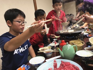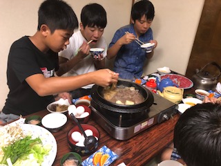 今夜の夕食はすき焼きでした。ご飯とお肉はおかわり自由。自分の胃袋の大きさを勘違いしている子もいたようです。