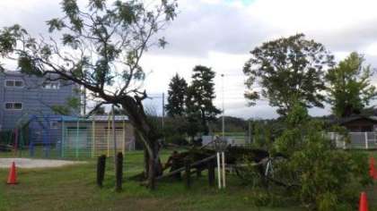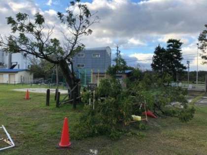 今日から10月。気持ちを新たに・・・と思いたいところですが、昨夜の台風で、運動場のせんだんの木が半分倒れてしまいました。本当に残念でなりません。今後の対応については、市当局やさまざまな方と協議し、考えていきたいと思います。まずは、保護者や地域の皆様に状況をお伝えしました。