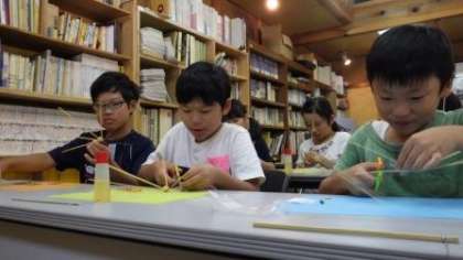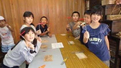 10月3日(水)3年生校外学習。三州足助屋敷で、風車作り、竹とんぼ作りに取り組んでいる様子です。