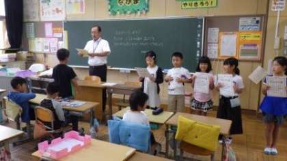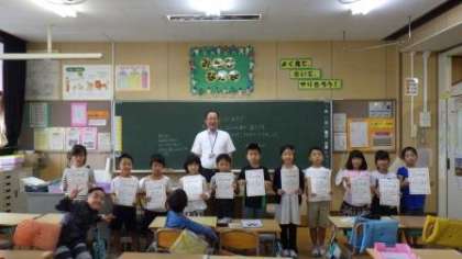 10月4日(木)朝の会の前に、2年1組の教室できらりかがやき賞の表彰を行いました。今回は、給食の準備や片付けを一生懸命に手伝ってくれる子が、担任の先生から推薦されていました。これだけ多くの「給食名人」がいれば、この学級は給食の準備が早くでき、食べ終わった後の教室もきれいでしょうね。