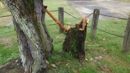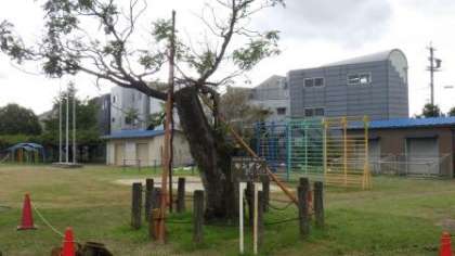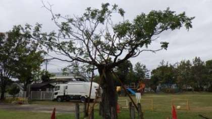 倒れた幹を取り払った、今のセンダンの木の様子です。今日も台風25号が接近しています。直撃することはなさそうですが、今も風は吹いています。風に揺れる枝を見ていると、支えはしてあるものの心配です。何とか耐えて欲しいものです。