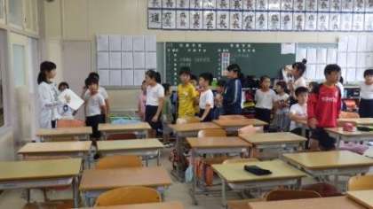 今日の給食後、通学団ごとに教室に分かれ、小通学団会を行いました。後期の新しい団長と副団長を決め、新たな並び方を確認しました。つい先日、登校途中に転んでしまい顔をけがしてしまった子がいました。また、これまでも登下校中に転んで、腕を骨折してしまう子もいました。交通事故に遭わなくても、大けがをしてしまうのは残念なことです。新しい団長さんのもと、新しい並び方で安全に登下校してください。