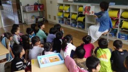 今日は学校公開日ですが、1時間目の公開授業の前に、PTA研修委員会による読み聞かせがありました。今回が3回目になります。忙しい朝の時間帯に、都合をつけて参加してくださる読み聞かせボランティアの皆さん、いつもありがとうございます。集中することが苦手な子どもたちが、読み聞かせの時間に、食い入るように絵本をのぞき込んでいる姿を見て、教員も勉強させていただいています。