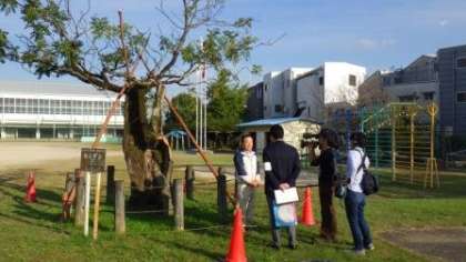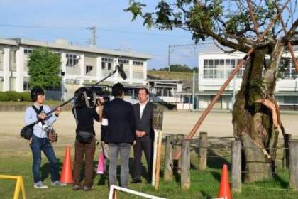 今月初めに倒れてしまったセンダンの木に関して、本日の午後、テレビ局の取材を受けました。明日、10月18日(木)の中京テレビ「キャッチ」(午後3時50分から午後7時)で、放送される予定です。私(校長)や児童の他、保護者や地域の方もインタビューに協力いただきました。突然のお願いだったにもかかわらず、お引き受けいただき、ありがとうございました。詳しい放送時間等につきましては、明日、学校メールでもお知らせする予定です。なお、19日(金)からはひまわりネットワークでも、「ありがとうの会」の様子を中心とした放送があります。
