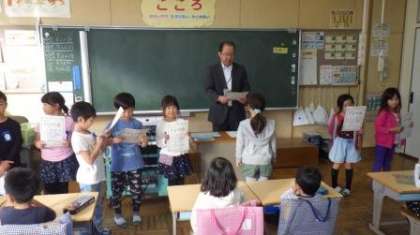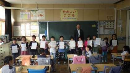 今朝は、1年1組のきらりかがやき賞の表彰を行いました。今回は、図書室の本を100冊以上借りている子や、授業中の発言を積極的にがんばっている子、給食の後片付けを進んで行う子、大きな声であいさつができる「あいさつ名人さん」などを表彰しました。表彰を受けられなかった子が少し残念がっていましたが、大丈夫!やるべきことを、きちんとやり続けていれば、きっと1年生のうちに誰もが表彰されます。