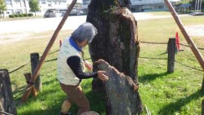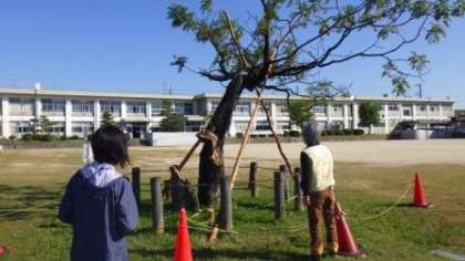 センダンの倒木に関しては、多くの報道機関が取り上げてくださったおかげで、学区ばかりでなく、広く世間の話題になったようです。今後は、残されたセンダンが少しでも長い期間、その姿をとどめておくように対策を立てなければなりません。今日は県の緑化センターから緑化相談員の方にご来校いただき、センダンを見ていただきました。樹木医に診察してもらうこと、さらにはその診察を受け、適切な処置を施していただくことを進めて行かねばなりません。費用もかかることですので、場合によっては、地域の皆様の御協力を必要とするかも知れません。その際はよろしくお願いいたします。