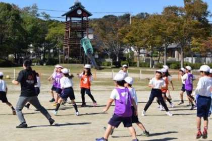 続いて3時間目に行われた2年生の活動の様子です。2年生は、1年生よりもボールの扱いに慣れている子が多かったようです。説明を聞くよりも、動くほうが得意な子が多く、コーチや先生から注意を受けていたようです。