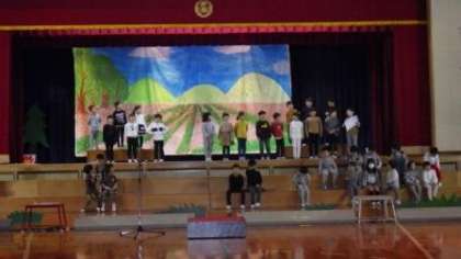 2時間目は1年生の劇を見せてもらいました。小学校に入って初めての学芸会。セリフもたくさんあって覚えるのがたいへんそう。少し緊張気味で早口になったり、最後まではっきり話せなかったり、あと2週間あれば、ずいぶん上手になるでしょう。