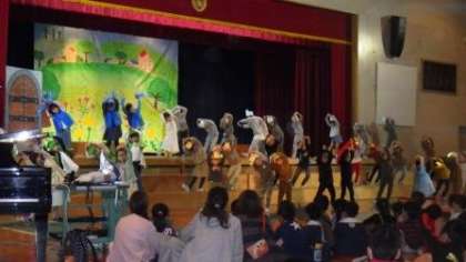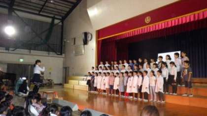 今日は1時間目から体育館で校内学芸会を進めています。ほぼ本番どおりの流れで午前の部が終了しました。会場内が暗いので、写真がうまく撮れていませんが、保護者の皆様は、10日(土)の本番でぜひじっくりご覧いただければと思います。ホームページでは、何となく雰囲気を味わってください。