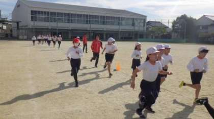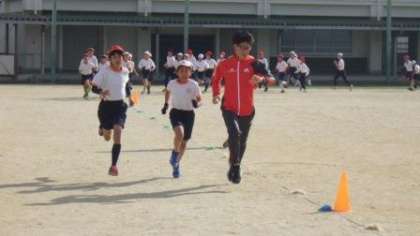 2時間目は5、6年生が講習を受けました。大学時代は箱根駅伝を走り、元日には実業団駅伝の全国大会であるニューイヤー駅伝に出場するアスリートと一緒に走れるとあって、子どもたちも張り切って走っていました。“腕を正しくしっかり振る”、“苦しくなっても背筋を伸ばし、前を向いて走り続ける” 教えていただいたことを持久走大会まで忘れずに、自分の走りに役立ててください。