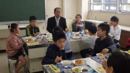 今日は久しぶりにフレンドランチを行いました。これまで10のグループと給食を共にしましたが、今日は後半第1回目の6−A班の12名でした。今日は子どもたちにわりと人気のりんごパンの日でした。今日は嫌いな食べ物で話が盛り上がりました。最近のイノシシ出没情報も話題になりました。