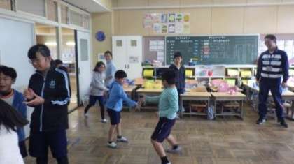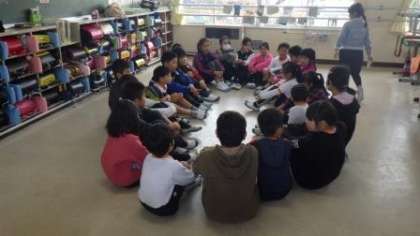 先週の木曜日のことになりますが、給食後にフレンド遊びを行いました。空模様が少し心配だったため、室内での遊びになりました。「なんでもバスケット」や「ハンカチ落とし」、「だるまさんが転んだ」など、今となっては古典的な遊びも楽しそうに行われていました。