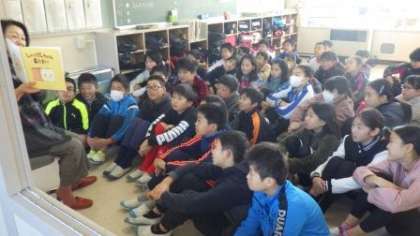 今朝は、ボランティアの皆さんによる読み聞かせが行われました。朝の冷え込みはそれほどでもありませんでしたが、それでも寒さの中、早朝から来ていただきました。子どもたちを引きつける巧みな読み方に、児童は絵本を食い入るように見ていました。そのような写真を載せてみました。ボランティアの皆さん、PTAの担当の皆さん、いつもありがとうございます。