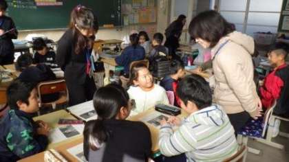 4年2組の話題が続いてしまいますが、今日の2時間目、せんだん学習(総合的な学習の時間)の授業研究会を行いました。4年生は「防災」をテーマに学習に取り組んでいますが、今日は「KYT」を題材に、担任と養護教諭が協力して授業を進めました。「K(危険)」「Y(予知)」「T(トレーニング)」として、「学校内で大きな地震に遭遇した場合、どう対応するか」を、6つの場所を想定して、グループごとに話し合いました。災害の時だけでなく、ふだんの日常生活でも「KYT」は大切ですね。