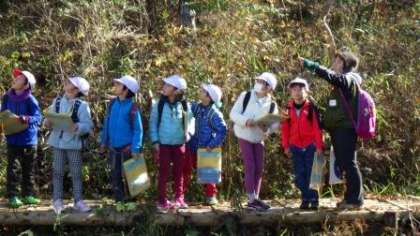 12月12日(水)に行われた4年生校外学習の様子です。豊田市自然観察の森に出かけました。ガイドの方から、いろいろ説明を受けながら、自然の観察をしました。野鳥の姿を多く目にすることができました。