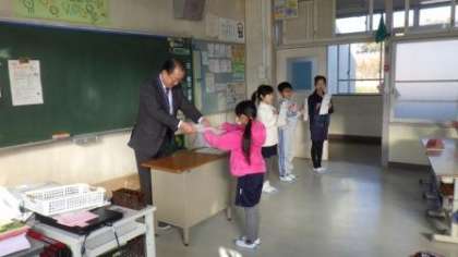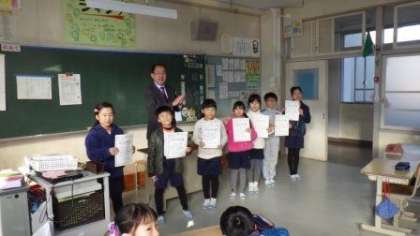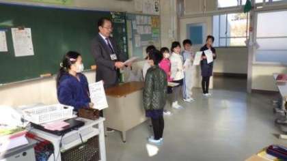全校集会後、3年1組の教室できらりかがやき賞の表彰を行いました。これで、冬休み前の表彰は終了しました。正月明けの1月から、また表彰を行います。毎月多くの子を表彰できると良いなと思っています。