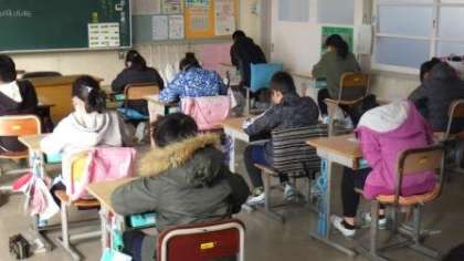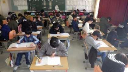 今日、明日の二日間、全校で学力検査を実施します。今日は国語と理科、明日は算数と社会を予定しています。学年によって受検する教科は異なります。写真は、今日2時間目に行った国語の検査の時の様子です。今回の検査は、この一年間の学習の定着度を判定する目安の一つとします。欠席で受検できなかった児童は、後日、どこかの時間で受けさせたいと思っています。