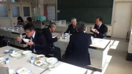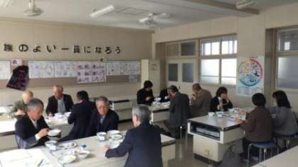 今日の午前中、5つの自治区の区長さんや学校アドバイザーの皆さん、また地域学校共働本部の役員の皆さんなどにお集まりいただき、第2回教育協議会を行いました。いろいろなご意見をいただきましたが、これまでどおり地域の力を存分に活用していくことや、学校行事の中で重点的に取り組むものを絞り、肝心の授業を大切にし、子どもたちの学力を高めることに力を注ぐことなどが確認されました。会議の後は、給食を一緒に食べながら、情報交換を行いました。
