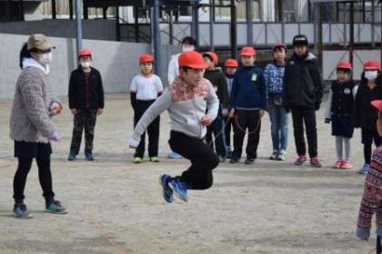 これまでフレンド班ごとに練習を積み重ねてきた「8の字跳び」。今日はその成果を競う「なわとび集会」を行いました。運動委員の進行で集会は進められました。練習の時以上の力が出たフレンド班もあったようです。うまく跳べても、途中で引っかかっても、笑顔がいっぱいのなわとび集会になりました。