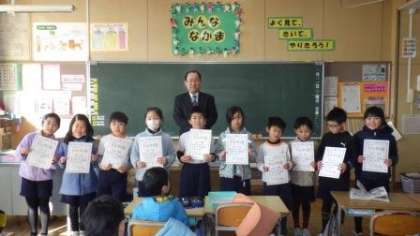 金曜日の朝は、前の週に引き続いて2年1組のきらりかがやき賞の表彰を行いました。授業の前に進んでノートやワークブックを配ってくれる子、黒板係としていつも黒板をきれいにしてくれる子、時間が来ると給食の配膳台をさっと片付けてくれる子など、自分の役割をしっかり果たす子が担任の先生から推薦されていました。もうすぐ、3年生。立派な中学年になりそうですね。