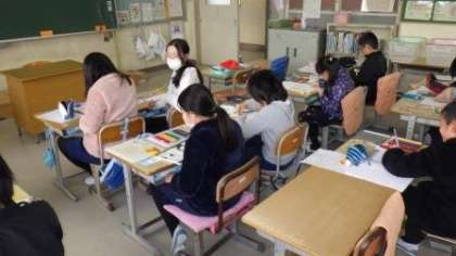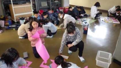 続いての写真は、イラスト・図工クラブ、ミニ飾りクラブ、家庭科クラブの活動の様子です。ミニ飾りクラブは、4年生と5年生しかいないので、卒業式の装飾を作成していました。