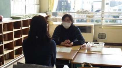 昨日の午後から、後期の個別懇談会を始めました。今週金曜日までの四日間です。昨年度までは、7月と12月に懇談会を行っておりましたが、学習成績に関する話や通知表に記載されていることに関して詳しい話が聞きたいという保護者の声や、通知表だけでは伝えきれない部分を話したいという教師の願いもあり、今年度から9月下旬と3月のこの時期に変更しました。ぜひ、来年度のスタートに役立つような有意義な意見交換ができればと思っています。時間厳守で進めていくことを心がけます。お待ちいただく際は、お許しください。