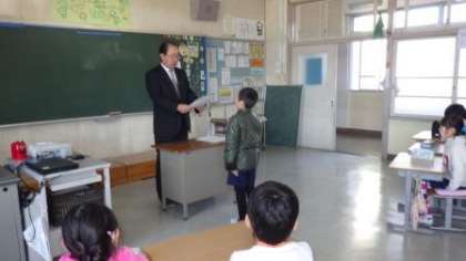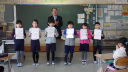 今日は朝の会の時間に、3年生の1組と2組できらりかがやき賞の表彰を行いました。算数の授業の時に、友だちにわかりやすく説明をしてくれた子や、トイレのスリッパをすすんで整頓してくれる子、給食の準備に誰よりも早く取りかかってくれる子、黒板係の仕事に責任をもって取り組んでくれる子などが担任の先生から推薦されていました。みんな良い姿勢で、しっかり返事をして、賞状を受け取ることができました。
