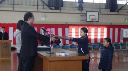 今日は2時間目に、初めて全校で卒業式練習を行いました。卒業生も在校生も緊張感が増し、ぴりっとした雰囲気の中で練習が行われました。驚いたことは、ほとんどやり直しがない「一発OK!」で進行したことです。3時間目は、私(校長)が本番と同じように証書を手渡す練習をしました。これも事前にちゃんと練習しておかないと、当日もたつく原因になります。子どもたちは何回も練習しているので大丈夫ですが、意外と先生が失敗することが多いので、我々教員も気が抜けません。