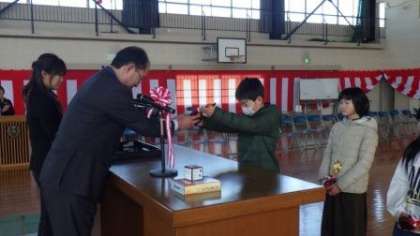卒業式予行練習の前に、6年生の中で6年間皆勤を達成した(あと2日間ありますが)児童を表彰しました。今年は3名の児童を表彰することができました。表彰の後に、子どもたち全員に話しましたが、6年の間、一日も欠席せずに登校できたということは、本人の努力ももちろんですが、お家の方のおかげであることも忘れてはいけません。本当におめでとうございました。
