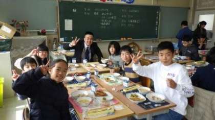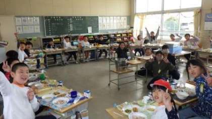 卒業式を前にして、6年生は今日の給食が小学校生活最後になりました。今日は「卒業祝い献立」で、卒業を祝う赤飯と、デザートにみかんタルトが付きました。曜日の並びの関係で、在校生も今日の給食が今年度最終でした。写真は6年生の教室と4年生の教室です。4年生の教室でも、今日の給食が最後ということで、いつもとは違った座席配置で楽しく給食を食べていました。今日の給食を最後に、3年間配膳室で勤めていた給食配膳員が、勤務を終え、ひと足早く卒業しました。春は別れの季節ですね。