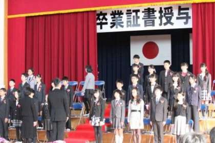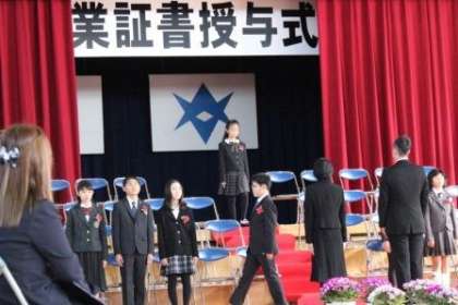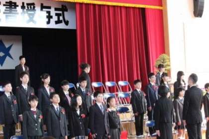 今日の卒業式の様子をお知らせします。まずは、卒業生入場です。皆さん、時間より早くお集まりいただけたので、予定どおり遅れることなく始めることができました。