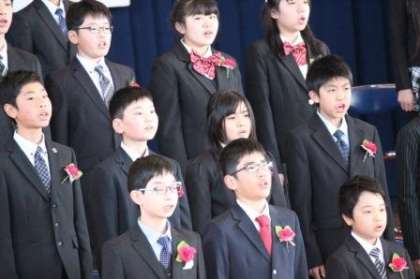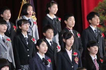 式の最後は、卒業生からの別れのことばでした。地域の方や保護者への感謝の言葉、在校生へのメッセージを心を込めて伝えました。「道」の合唱、心に響きました。