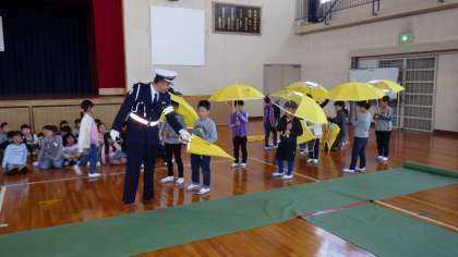 本日、1年生が交通安全教室を受けました。5人の交通指導員さんに交差点の渡り方などを丁寧に教えていただきました。伊保小学校は、スクールガードさんや保護者など多くの方々に支えられて安全に登下校できています。ありがとうございます。