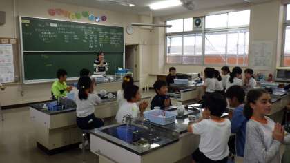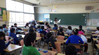 市では、きめ細やかな教育実現のためにサポートティチャーを各校に配置しています。本校では、3人のサポートティーチャーにいろいろな教科を教えていただいています。人数の多い4、6年生を中心にTTなどの授業を実施しています。