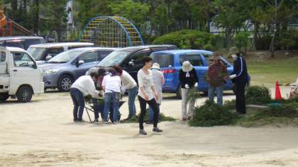 本日の午後、平日にもかかわらず、地域の人にも運動会の準備を手伝っていただきました。杉の葉、くす玉の竹など持ってきていただきました。ありがとうございました。