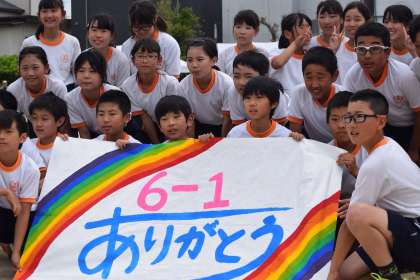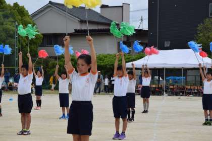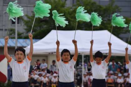 5・6年生によるトーチワーク。4月から取り組んできました。手の皮を何回もむいて練習したかいがあり、とても素晴らしい演技となりました。