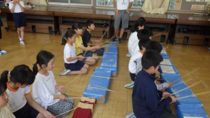 活動時間は、クラブ活動の時間で行っています。全部で9回の練習が計画されています。祭囃子は、保見地区の方々に教えていただいています。