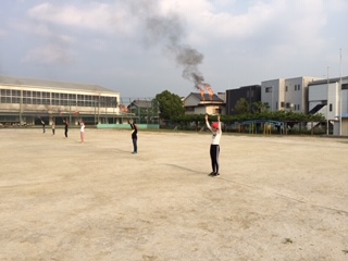 7月のキャンプに向けて、希望者によるトーチワークのリハーサルをしました。火の熱や音、においを体感できました。