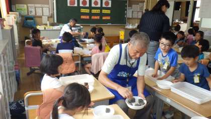 豊田市のものづくり教育プログラムを活用して、1・2年生が「スーパー土団子づくり」に挑戦しました。ものづくりサポーターさんが、なんと24名もきていただき作り方を丁寧に教えていただきました。