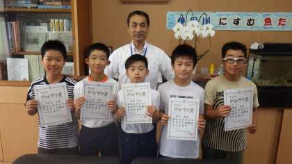 伊保小学校の子たちは、毎日、一生懸命登下校をしています。1時間目に行われた通学団会では、気持ちのよい登下校ができるようにあいさつや並び方について確認し、頑張っている子を称賛しました。登下校でお世話になっている人たちに「あいさつ・お礼」を特にしっかりしている5人には、きらり輝き賞が授与されました。