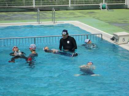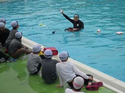 6年生は、服をきたまま泳ぐ、「着衣泳」を体験しました。消防署の方に講師をしていただき、服を着ていても溺れない泳ぎ方について、教えていただだきました。学校教育に水泳の授業が導入されたのは、各地で子どもの水難事故が起きたことがきっかけでした。泳ぐことよりも溺れないこと(浮かぶこと)が大切です。
