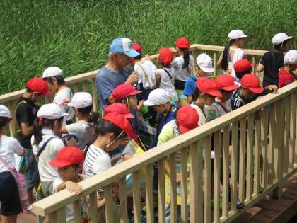 3年生が「保見町里山を守る会」の方々の手引きにより、学校周辺の「里山探検」に行きました。水路・田んぼの生き物を観察したり、蛍の生息場所の観察をしたり、ギフ蝶の説明を聞いたりしました。最後に猿投産のおいしいスイカをごちそうになりました。大変楽しい学習となりました。