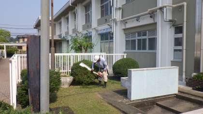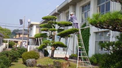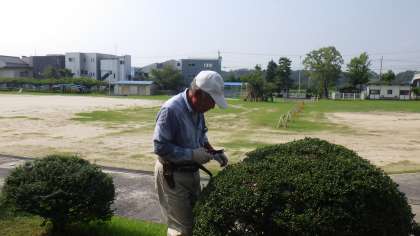 連日、37度近くまで気温が上がる猛暑となっています。そんな中ですが、校地内の樹木の剪定をしていただきました。本校の剪定は、長年にわたり、今井さんにお願いしています。本校には、本当に多くの地域の方に継続してかかわっていただいてます。