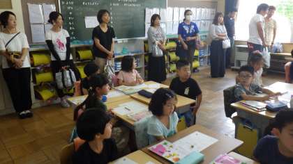 本日は、学校公開日でした。たくさんの保護者に来校していただきました。1時間目は、授業参観、2時間目はPTA親子奉仕作業でした。さらに、PTAバザーも実施していただきました。ひまわりTVの学校紹介番組「ボクらの学び舎」(10/19放送予定)の取材もありました。